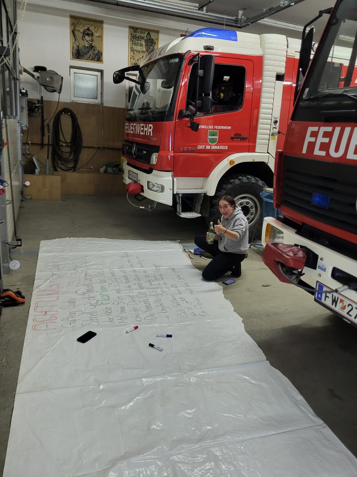 Das freudige Ereignis nahmen wir zum Anlass, um unseren Feuerwehrstorch landen zu Lassen.