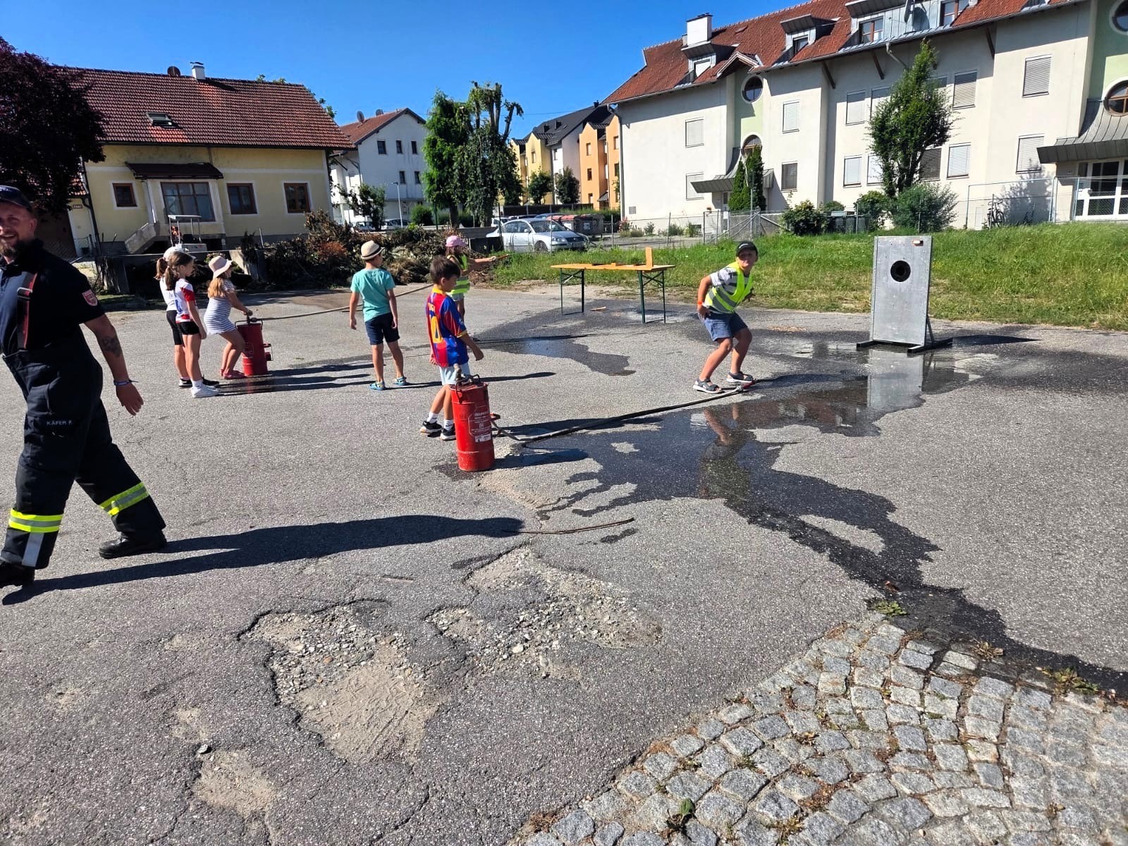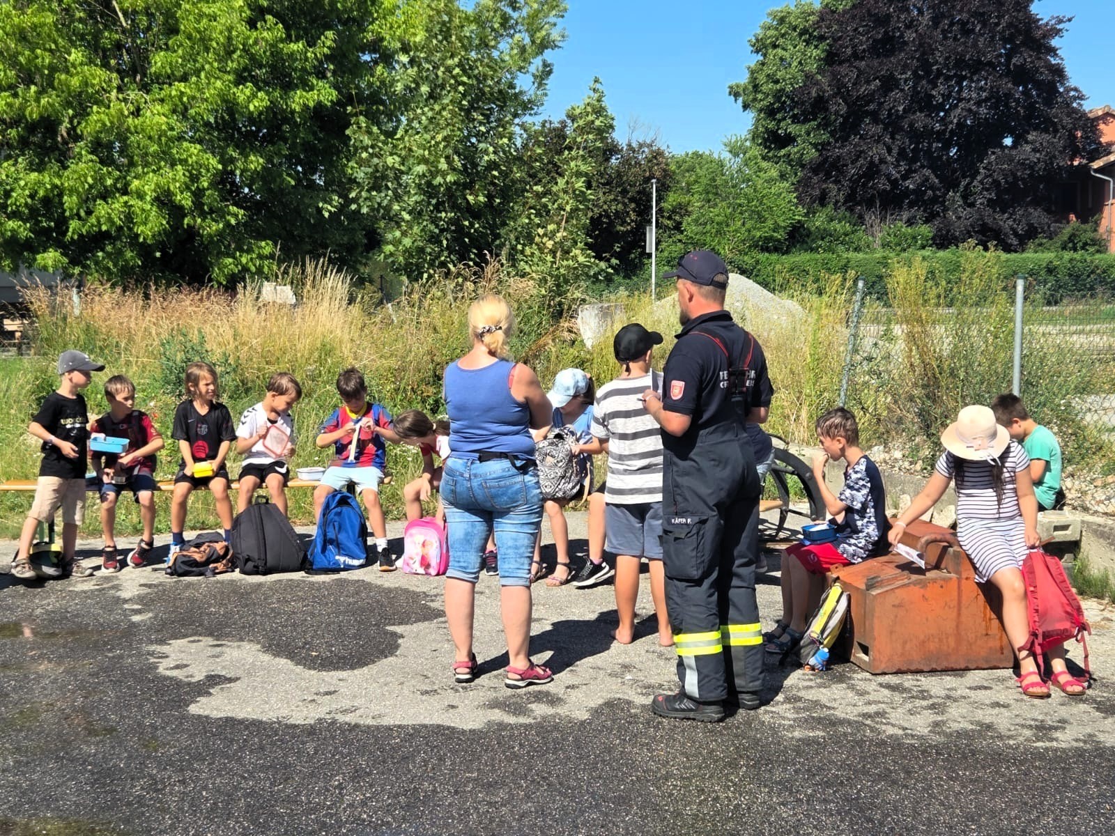 An einem schönen und heißen Vormittag bekamen wir spontanen Besuch von der 2. Klasse der Volksschule Ort mit Klassenvorstand Dick Anita. Von Erkundung des Feuerwehrhauses bis zur Fahrt mit einem Feuerwehrauto war alles dabei.