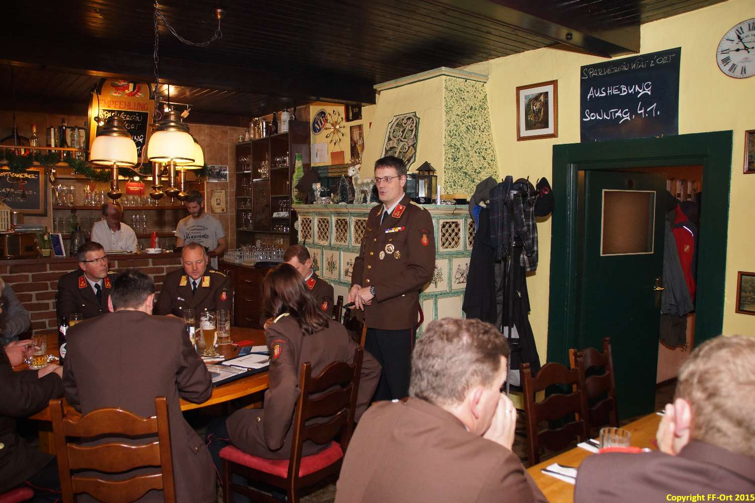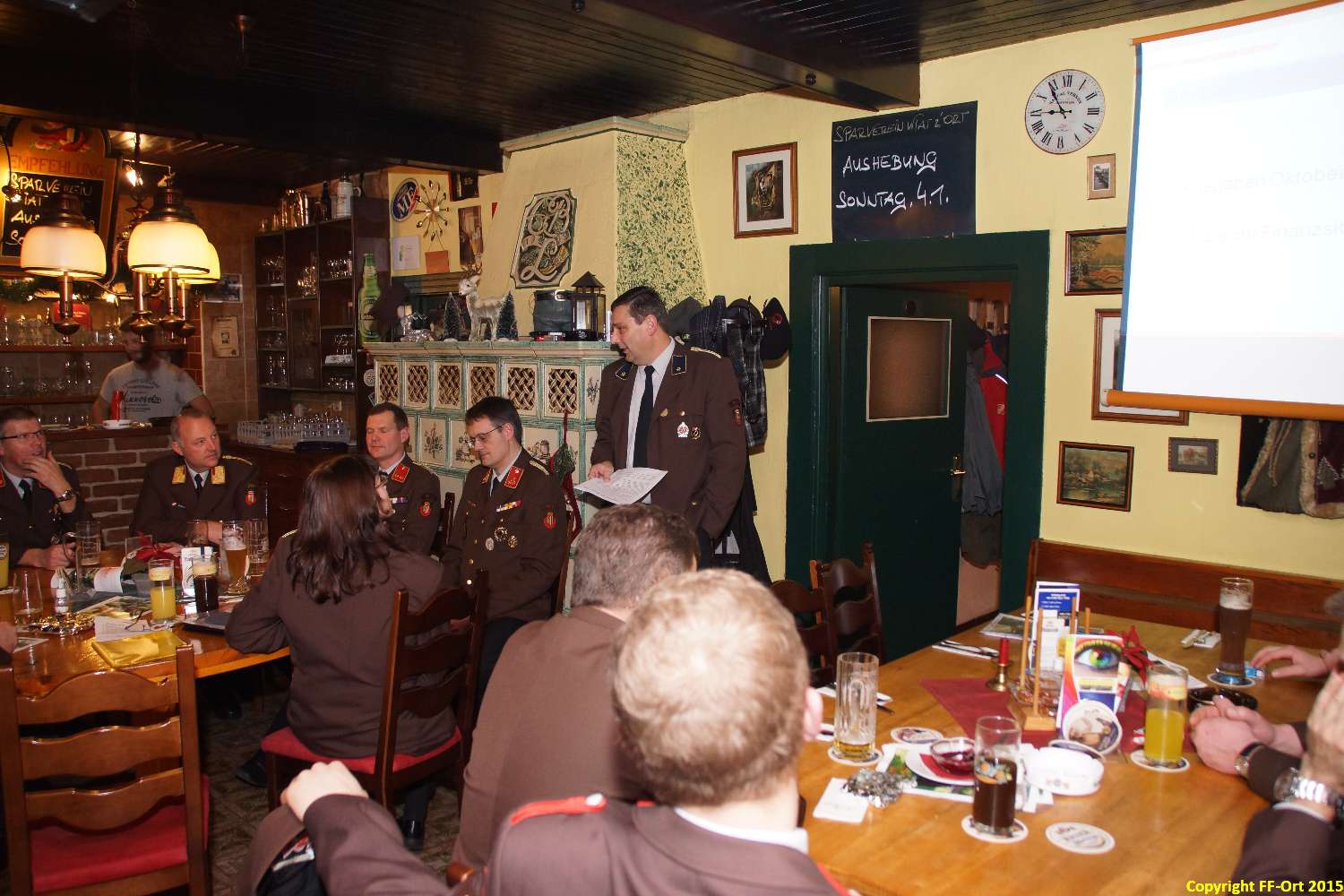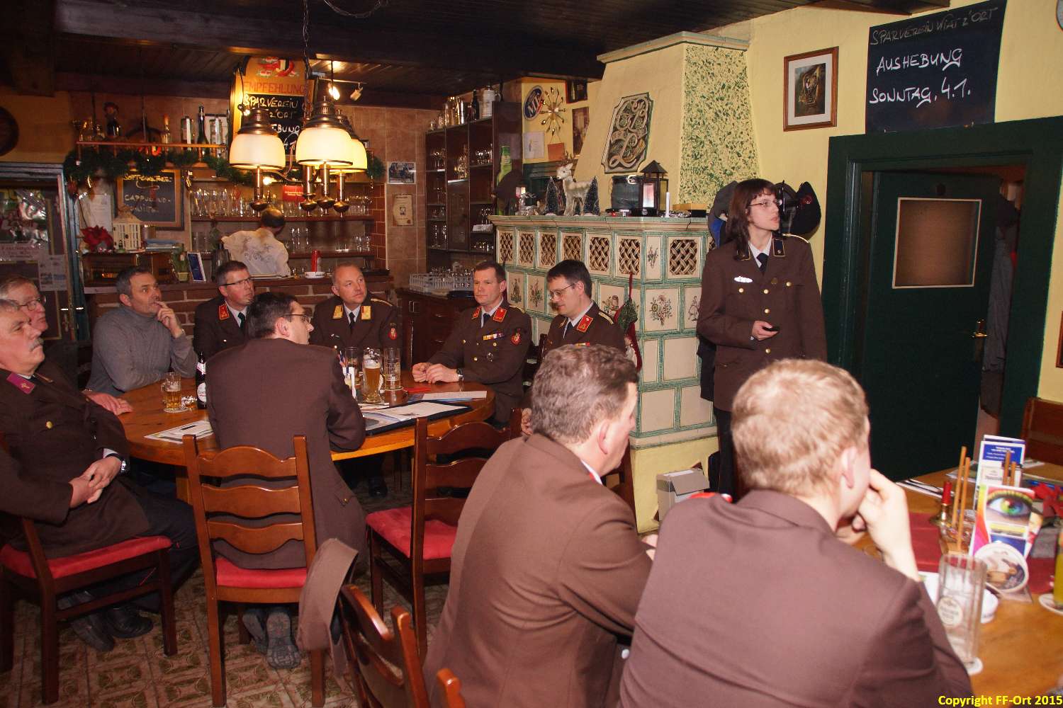 Am 5. Jänner 2015 hielten wir unsere Jahresvollversammlung beim Wiat z’Ort ab. In Summe wurden im Jahr 2014 9.200 ehrenamtliche Stunden für das Feuerwehrwesen und somit indirekt auch für unsere Bevölkerung geleistet. Im Jahr 2014 wurde wir zu 34 Einsätzen gerufen, wobei 353 Einsatzstunden geleistet wurden.