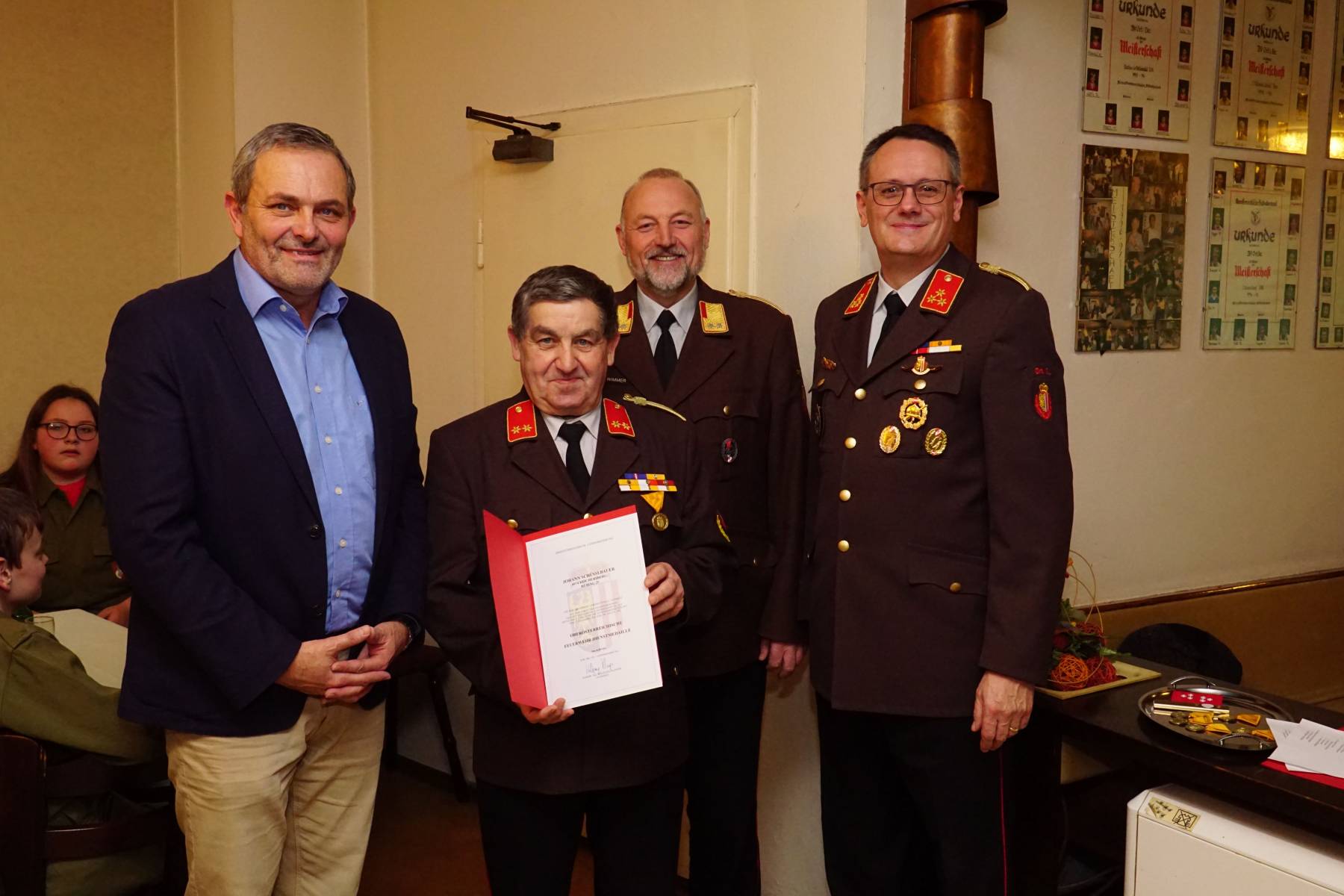 Ein Höhepunkt der Versammlung war die Auszeichnung unseren Ehrenoberbrandinspektor (E-OBI) Johann Schüßlbauer. Seit 50 Jahren engagiert sich Hans bei unserer Feuerwehr. Er übte 15 Jahre lang die Funktion des Kommandant-Stellvertreters aus. Wir gratulieren unserem Hans recht herzlich für 50-jährige treue Mitgliedschaft und bedanken uns für sein Bemühen.