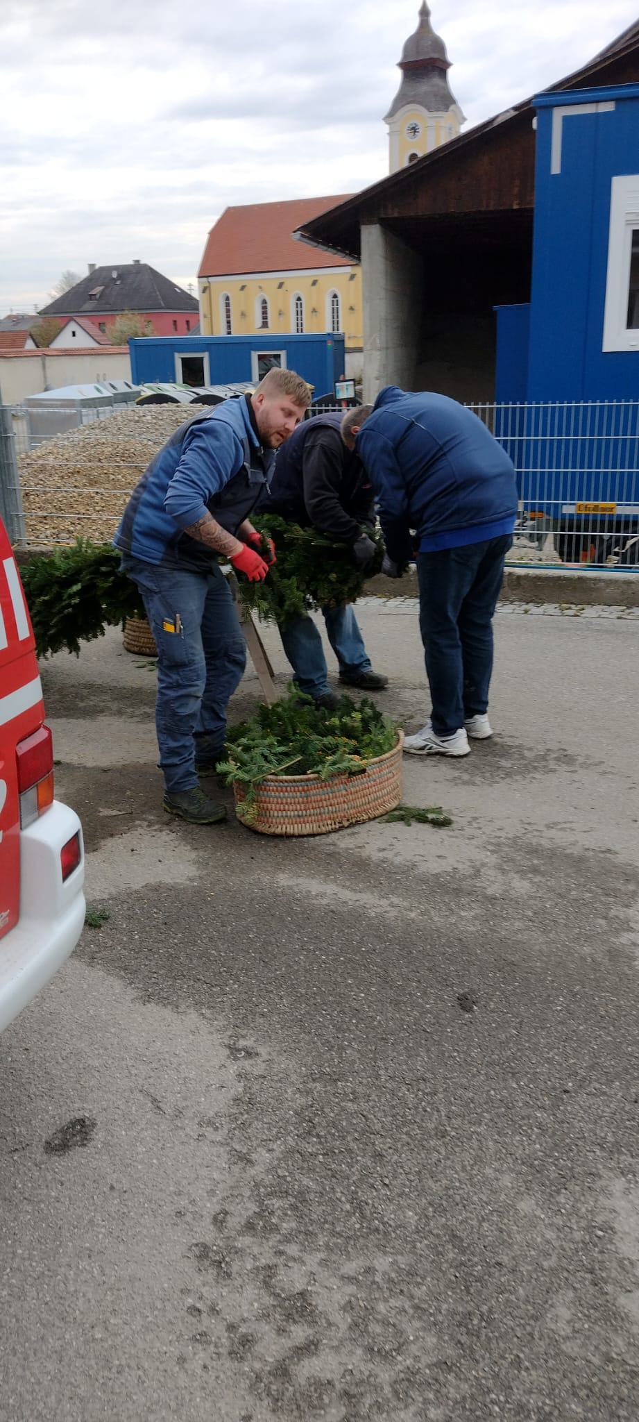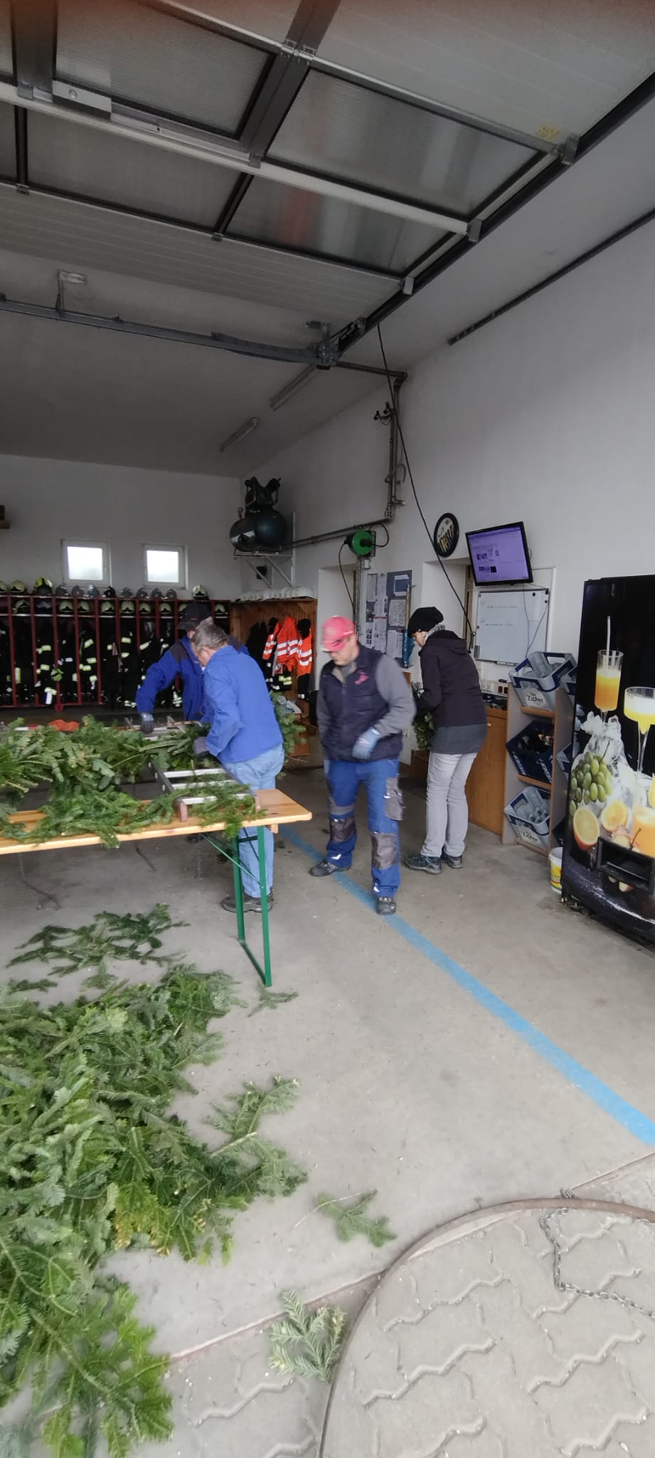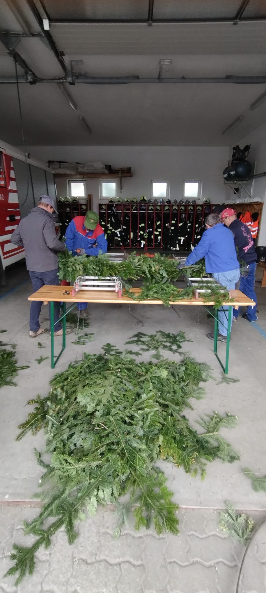 Nach dem Motto „viele Hände schnelles Ende“ trafen sich über 20 Kameraden/Kameradinnen am 27. April 2022 beim Feuerwehrhaus, um die Girlanden und die Kränze für den diesjährigen Maibaum zu binden. Danach gab es noch ein gemütliches Beisammensein bei einer Gulaschsuppe.