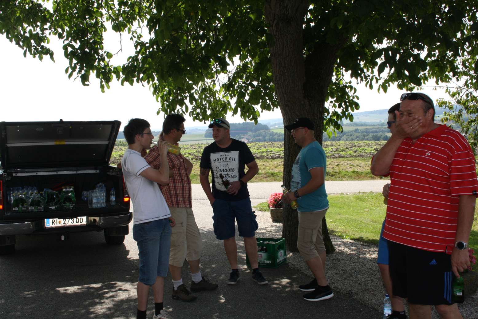 22 wanderlustige Feuerwehrer und deren Familienmitglieder erkundeten am 26. August durchs Tannert den gemütlichen Vitalwanderweg.Bei spätsommerlichen wunderschönen Temperaturen kam jeder ins Schwitzen und um so mehr genossen wir die innere Abkühlung bei den zwei Stationen im Schatten. Am Ende unserers Weges zeigte uns Hans-Jügen Watzinger stolz seinen Weinberg auf der "Gatringer Leitn". Am Abend probierten wir noch den einen oder anderen Wein bei der Verkostung mit der leckeren Heurigenjause im Gastgarten und im Weinkeller.