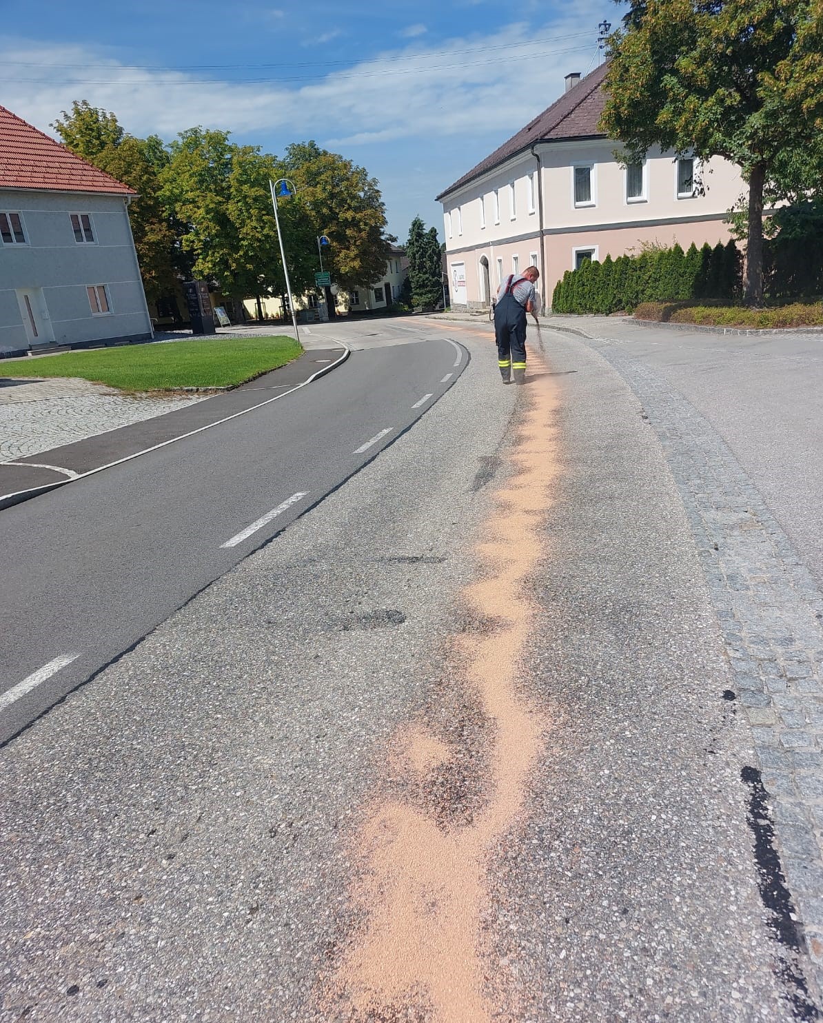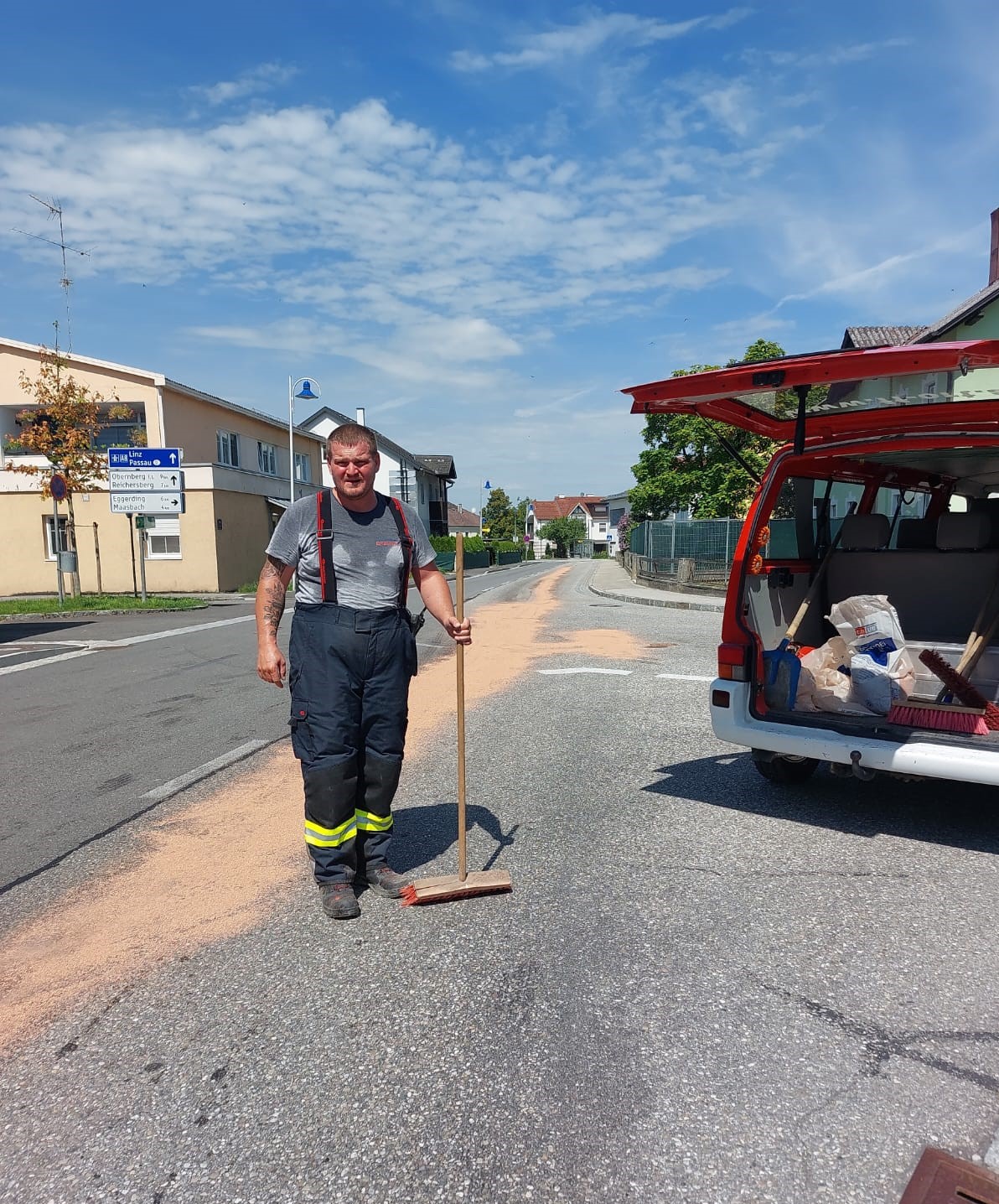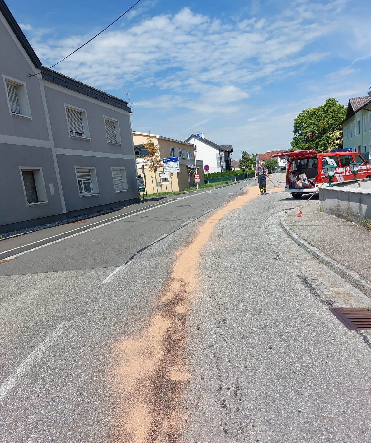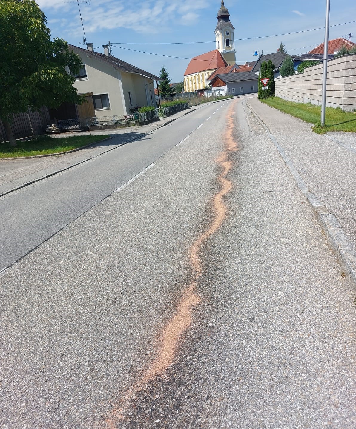 Am 13.08.2023 wurden um 11:36 die Feuerwehren Osternach und Ort, per stiller Alarmierung zu einer Ölspur im Gemeindegebiet alarmiert.