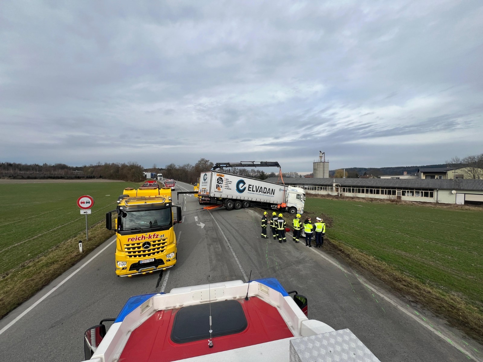Die Feuerwehren sicherten die Unfallstelle ab, banden auslaufende Betriebsstoffe und führten die Aufräumarbeiten durch. Die Bergung des LKW wurde durch das Abschleppunternehmen Reich übernommen.